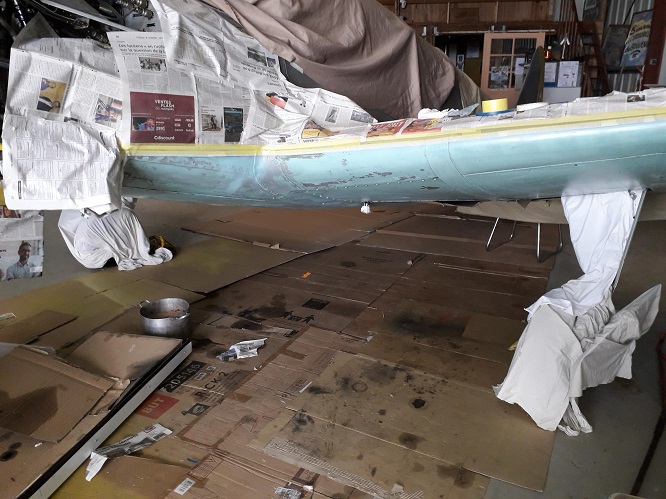 Du jaune sur le bout du nezet sur le bout des ailesle bleu avait souffertc'est prêt à peindreJusque dessous le fuselageSurélevé l'accès est plus facile